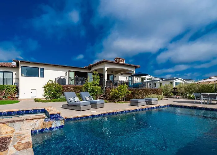 エンシニータス市内中心部まで徒歩20分で、サンディエゴ植物園から約500メートルです。 エンシニータス・ランチ・ゴルフコースは浴室4室の別荘から徒歩で30分くらいで、ラ・コスタから4.1キロメートルの距離にあります。 Spanish Dream With Ocean Views ヴィラからはカーディフ・スポーツ・パーク(3㎞)やサン・エリホ・ステート・ビーチ(2.8㎞)などの自然の驚異に行きやすいです。